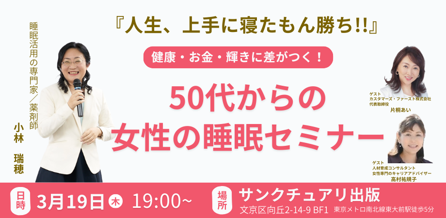 「知っておくと人生に差がつく50代からの女性の睡眠」についてお届けします。