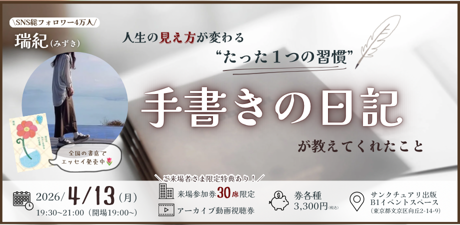 ※お申込みいただきました情報はサンクチュアリ出版とイベント主催者にて共有させて頂き、イベント情報の連絡に使用させていただきます。