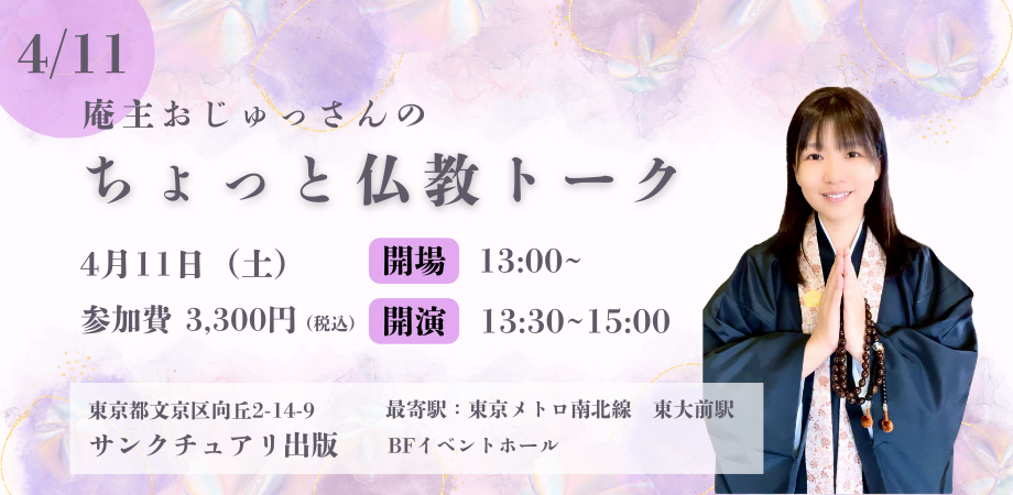 SNSで親しまれている「庵主おじゅっさん」が、サンクチュアリ出版にて初イベント。
