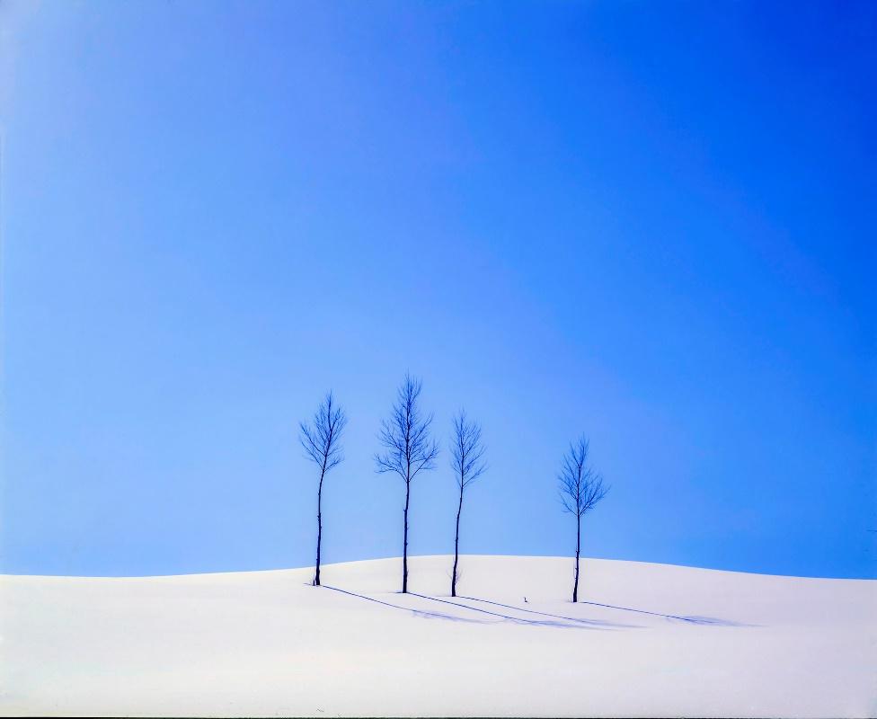 一方、雪原の空は余計なものが少なく、透明な青がまっすぐに届きます。