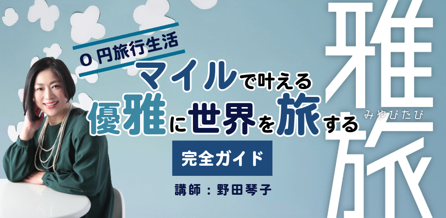 「0円旅行生活 マイルで叶える優雅に世界を旅する【雅旅】完全ガイド」のご案内です。